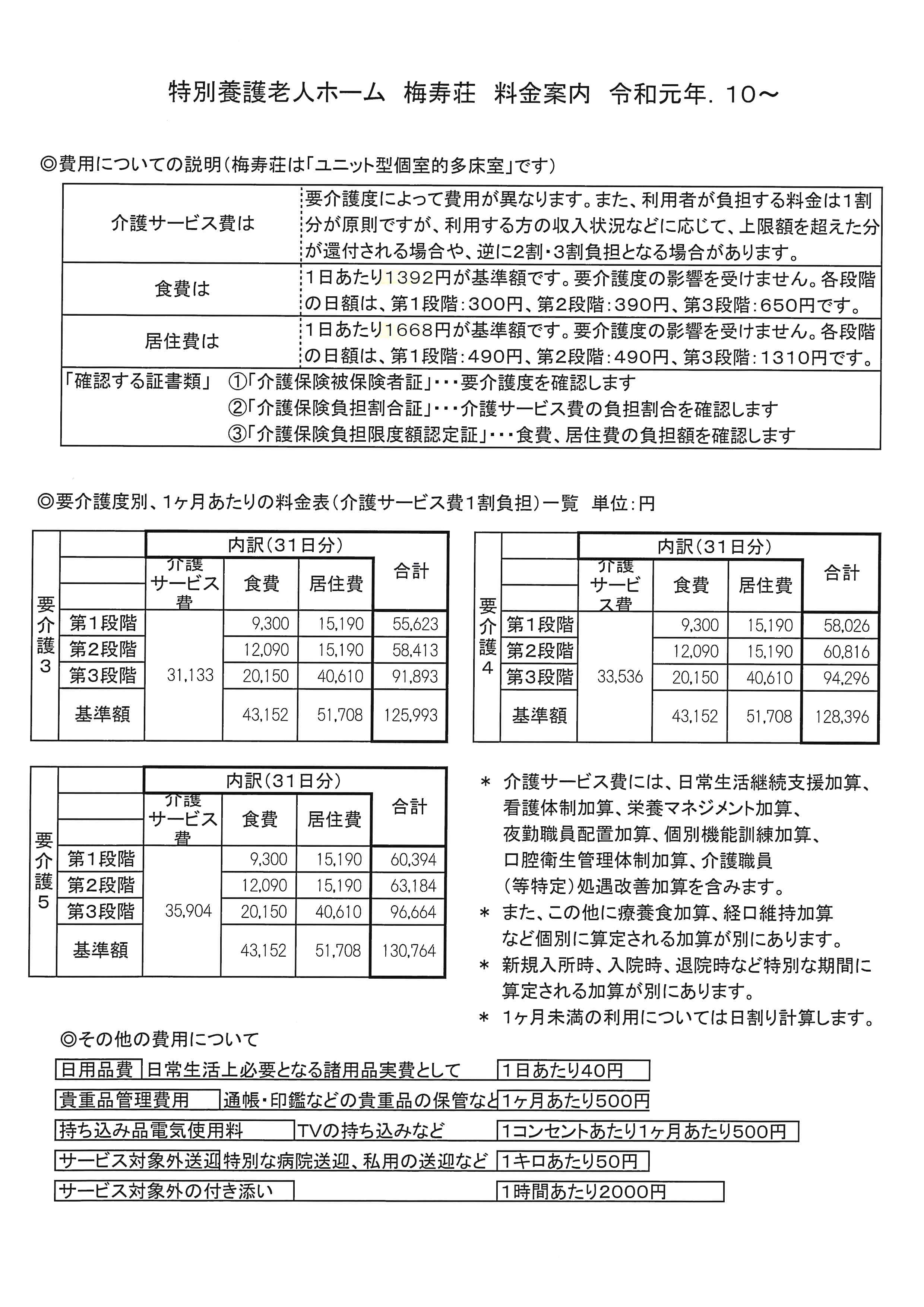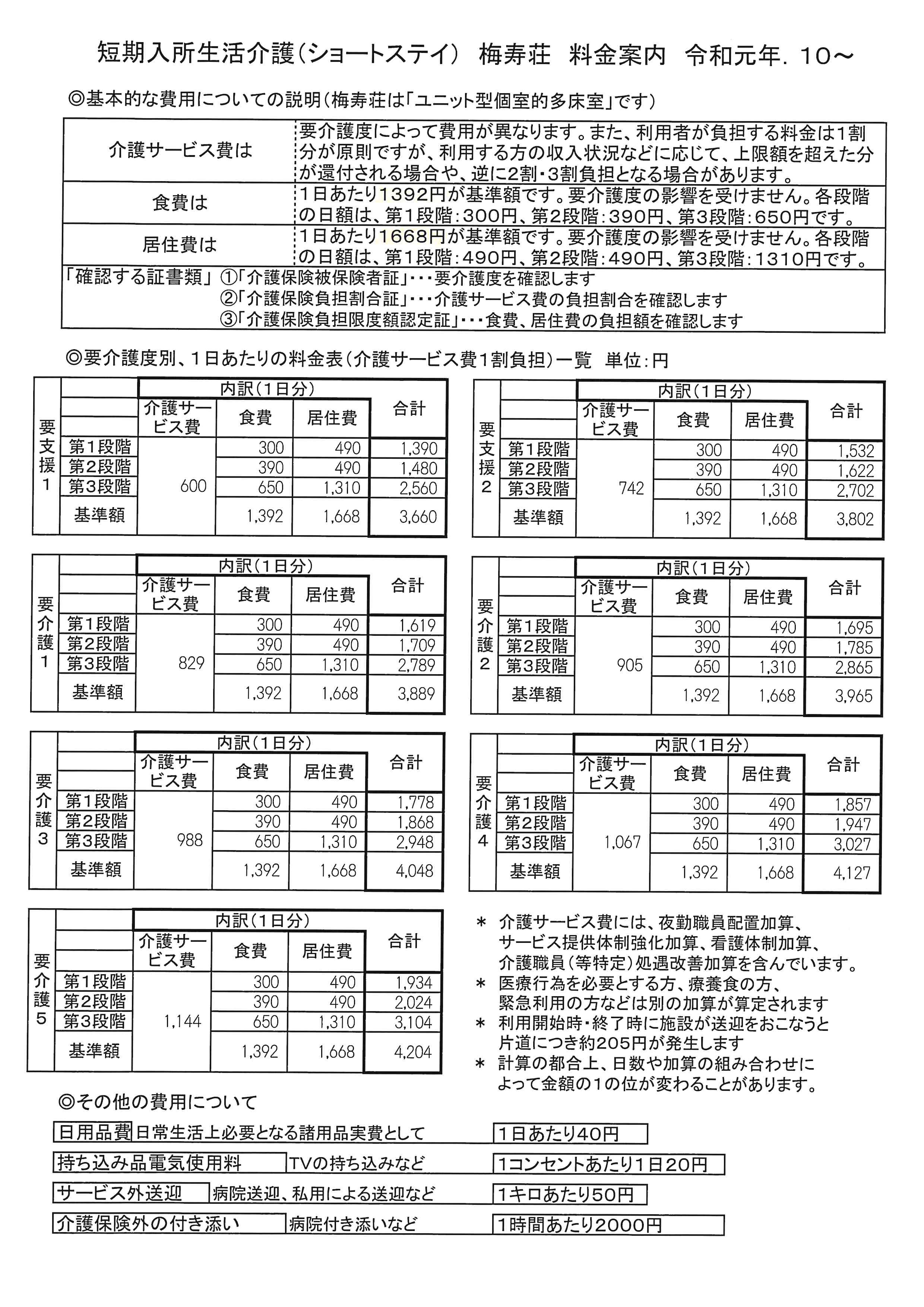 令和元年10月から消費税増税に伴う介護報酬改定により、利用料金の改正を行うこととなりましたので御理解賜りますようお願い申し上げます。